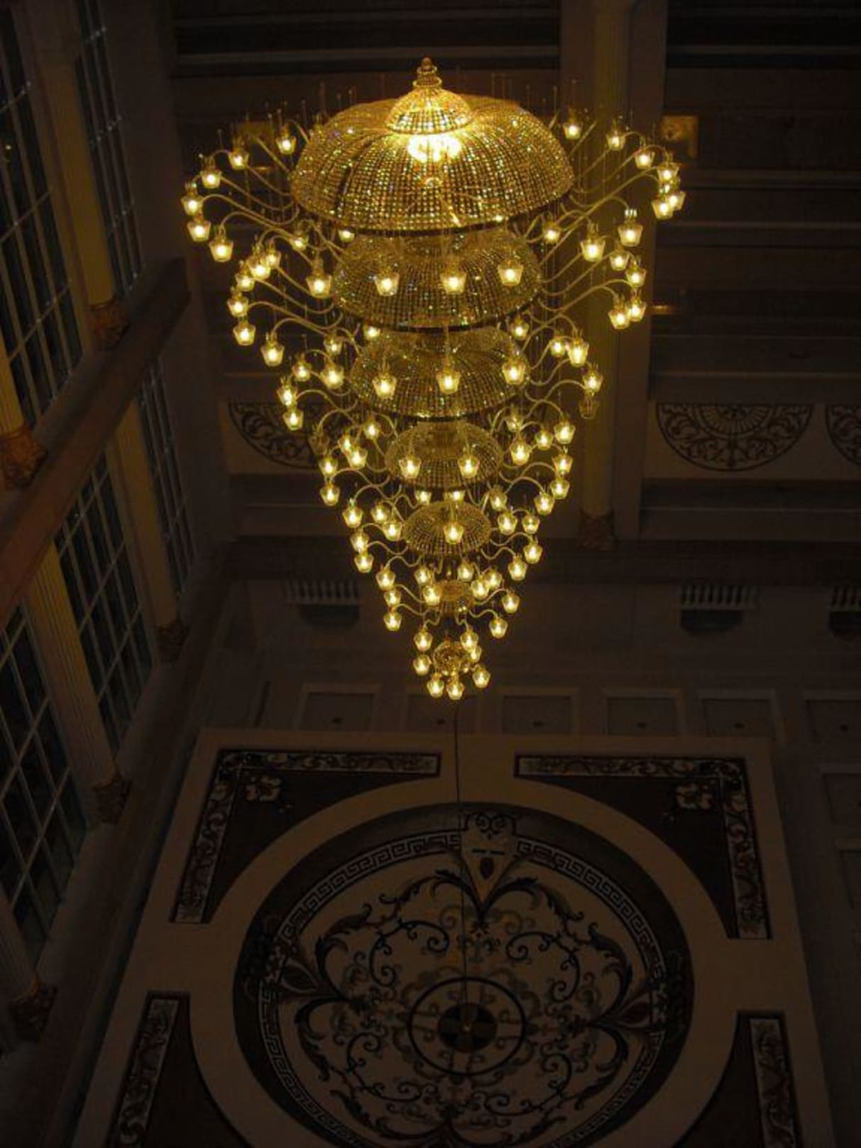 Kronleuchter in der Lobby abends