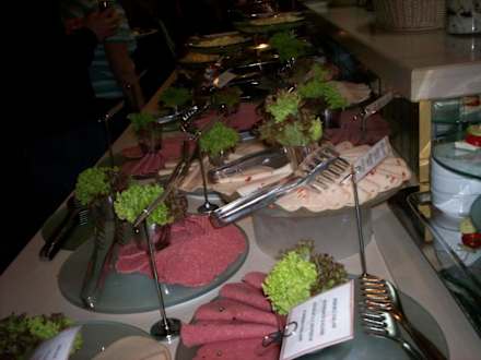 Büffethier gibt es Wurst,und immer mit dem Kärtchen wie die Wurst heist
