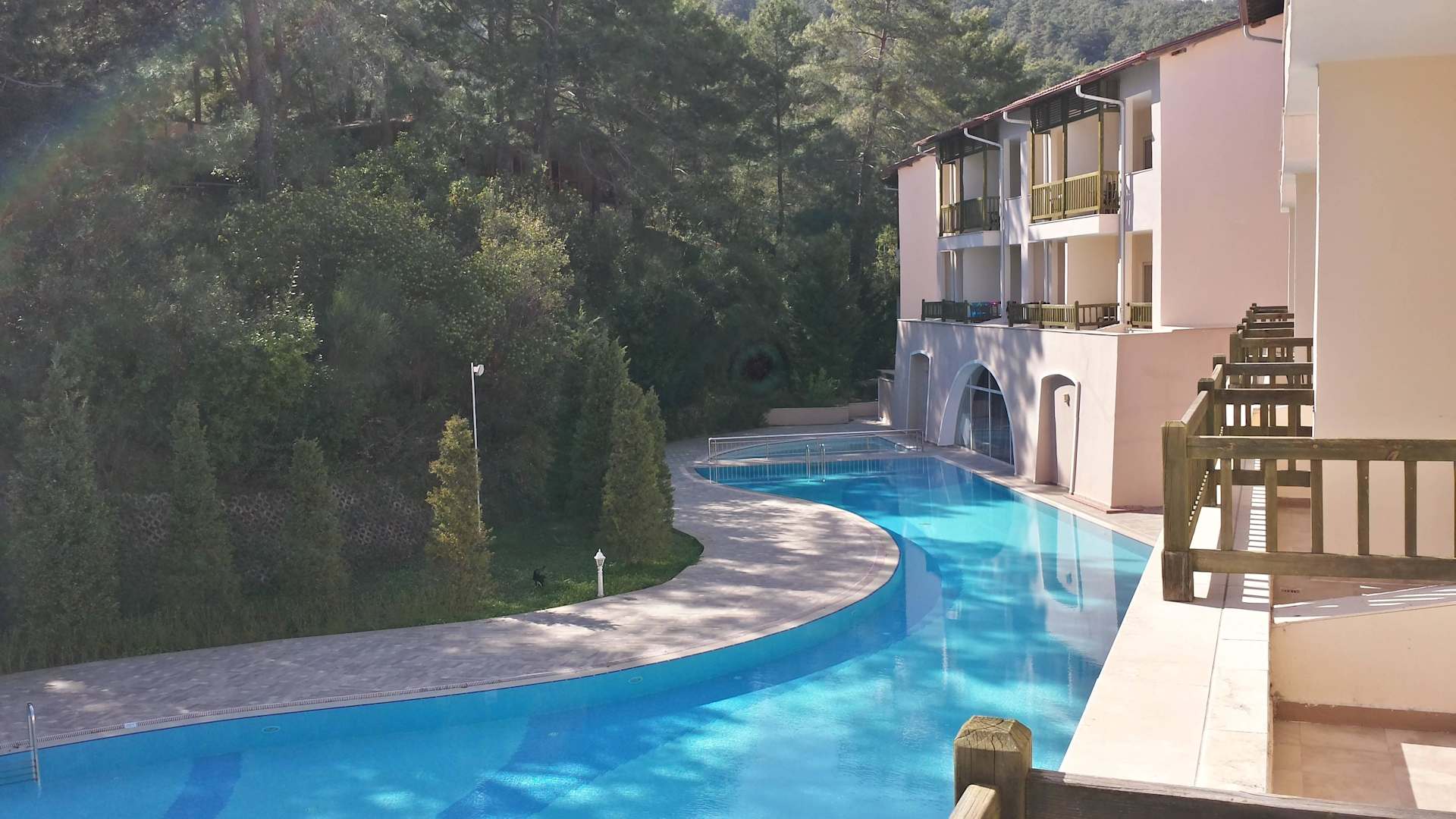 Ausblick auf die Poolanlage von unserem Zimmer