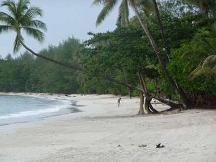 meist menschenleer, leider ohne liegen, kann man sich aber vom pool holen. hin und wieder teer im sand, der sich an füße klebt.schöne bucht für mittleren spaziergang ca 1std