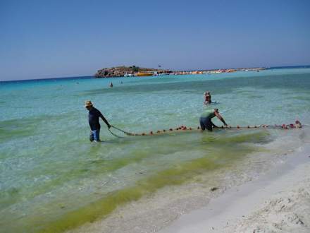 Tägliche Reinigungsversuchemit eher untauglichen Mitteln und äußerst unprofessionell versucht man die Algenplage in der Bucht zu bekämpfen