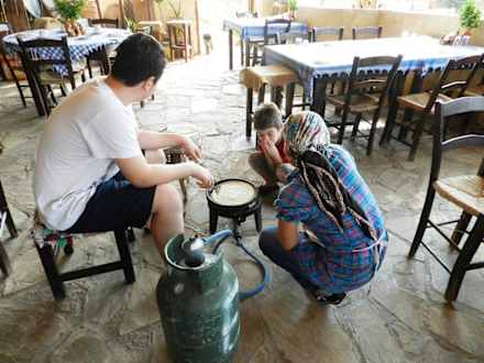 Im Nitovikla Garden werden Pfannkuchen gebacken.