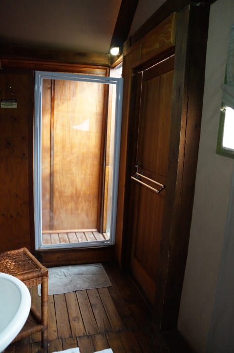 Dusche geradeaus und rechts gehts raus zur Freiluftdusche
