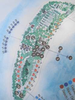 Karte der gesamten InselDiese Karte zeigt alle Strandbungalows plus die zum WEsten hin zeigenden Super Deluxe Wasserbungalows.