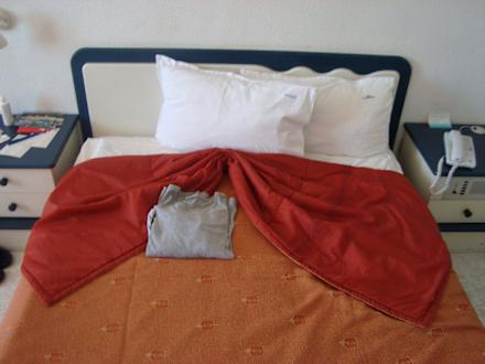 So hübsch hat das Zimmermädchen mein Bett gemacht. Einfach schön.