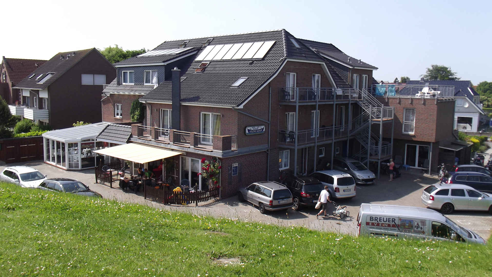 Das Hotel vom Deich aus gesehen