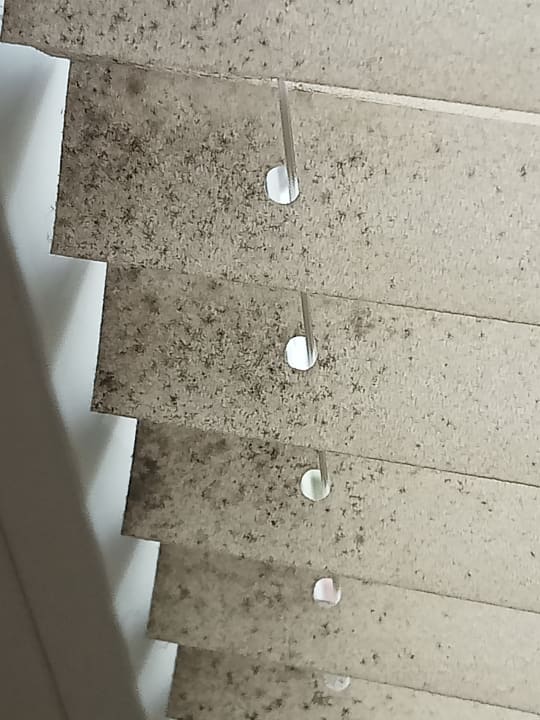 ZimmerBadezimmer verschimmelte Rollos. Lampen die vor Staub kaum zu erkennen waren. Alle Fenster in der Unterkunft total dreckig.