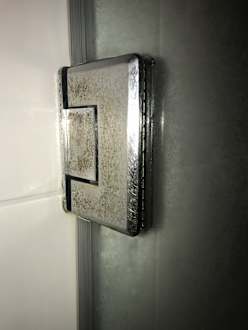 Durch das nichtbeheizte, kalte Bad, sind überall Schimmelspuren zu finden.