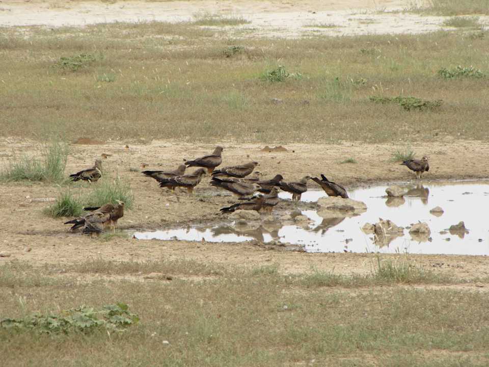 Adler am Wasserloch des Camps