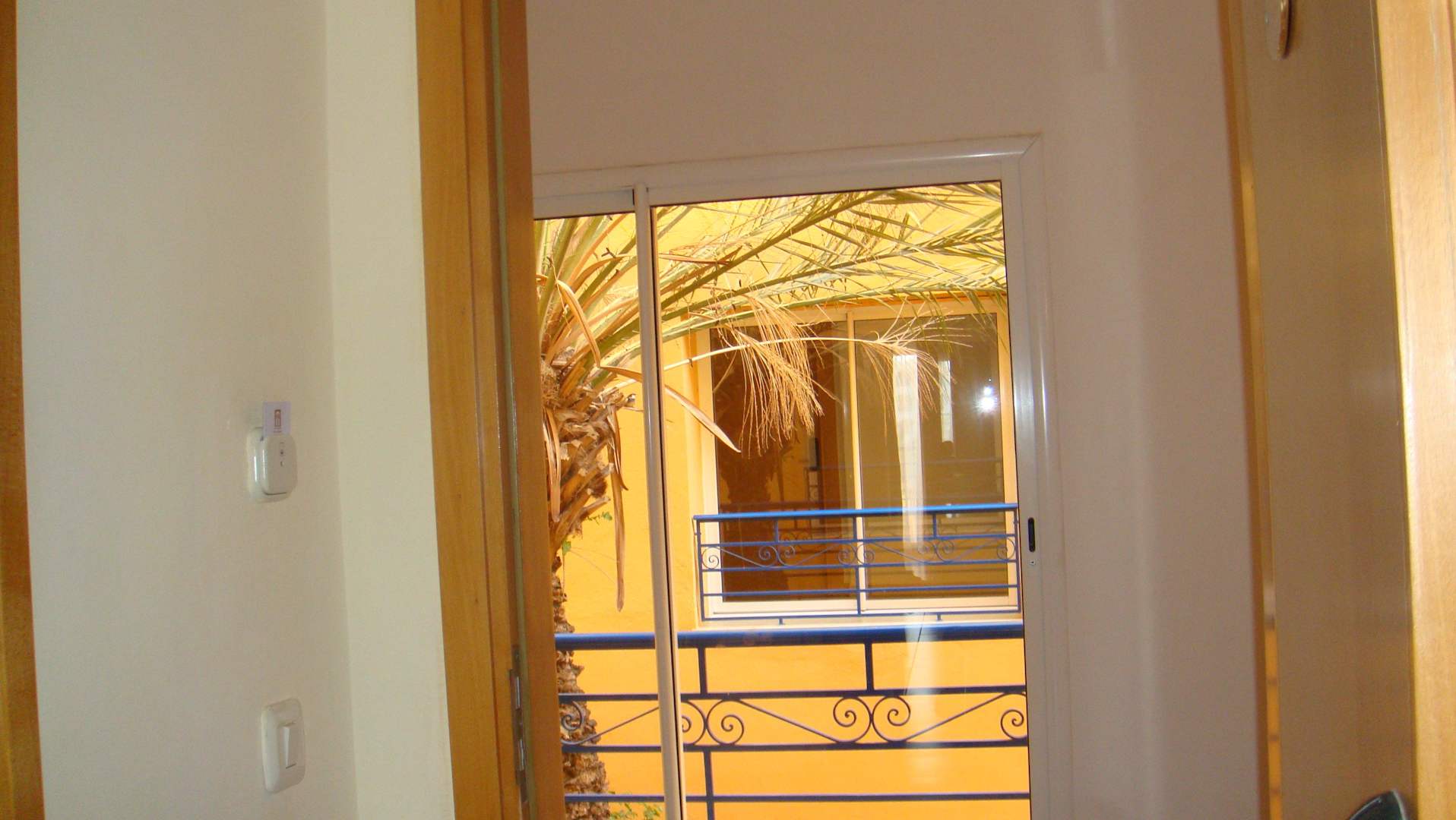 Výhlad z izby na chodbu