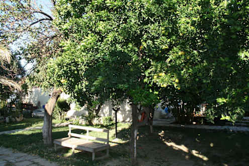 Blick vom Bungalow in den Garten