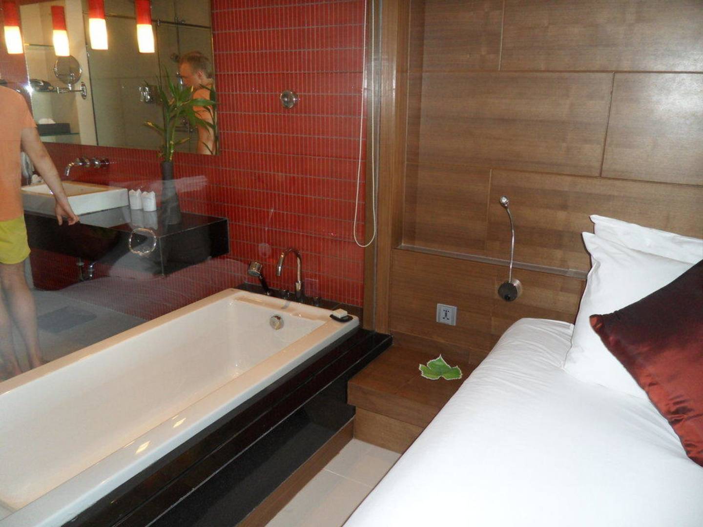 Ванная и спальня разделены стеклом