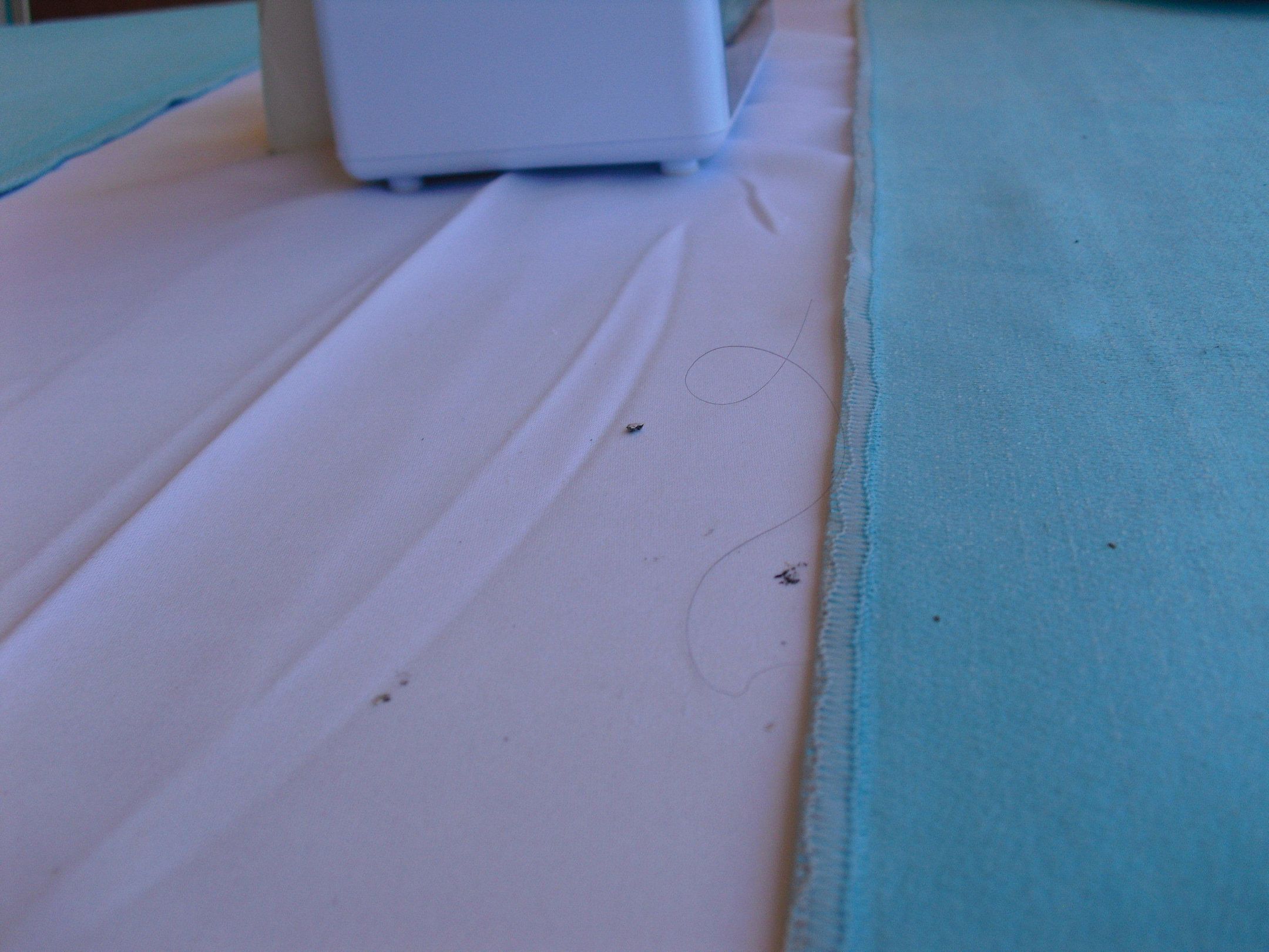 Mittagessen- Restaurantterasse, Haare auf Tischtuch