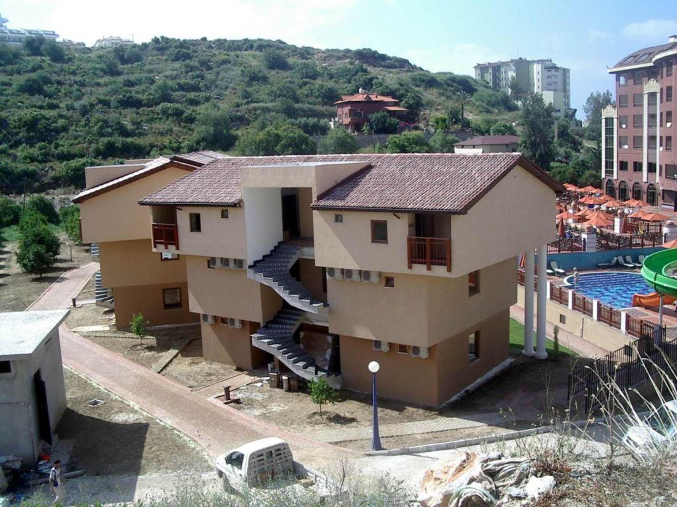 Rückansicht der VillenRückansicht der Villen. Sie waren definitiv zum 06.06.09 noch nicht ganz fertig. Am Aufnahmetag wurden die Treppengeländer montiert.