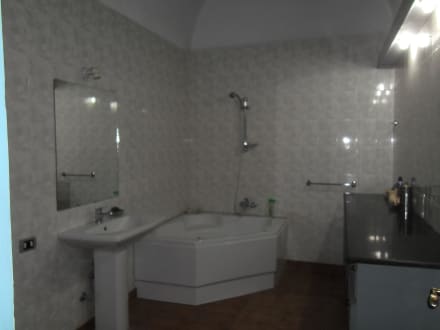 Das grozügig angelegte Badezimmer hat sogar eine Waschmaschine.
