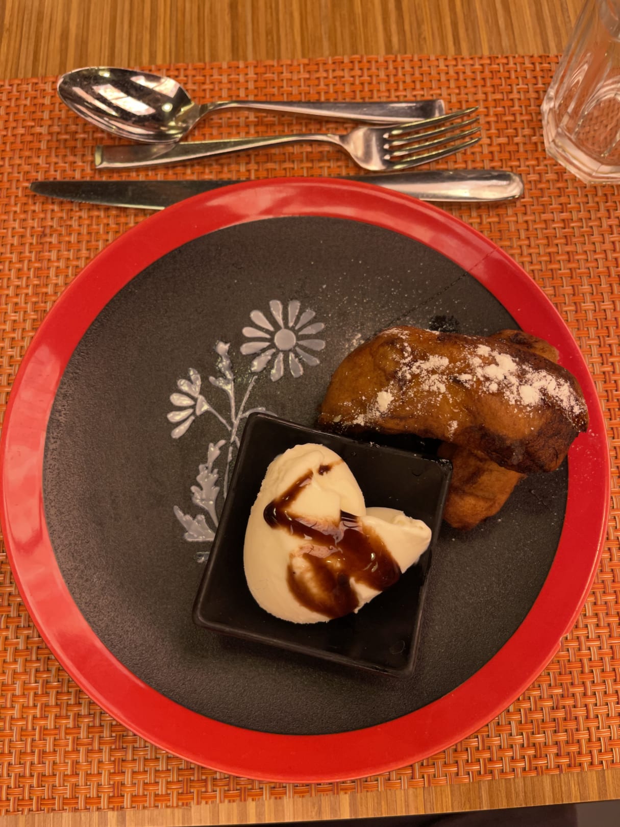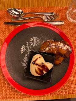 Nachspeise im asiatischen Wok-Restaurant (frittierte Banane mit Eis)