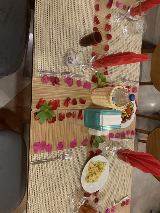 Mazlum hat uns mit dem geschmückten Tisch und mit unseren getränken schon direkt zum Abendessen empfangen. Super Typen, dank Mazlum und Ökkes hatten wir immer direkt einen Tsich und unsere Getränke noch Während wir am Buffet waren.