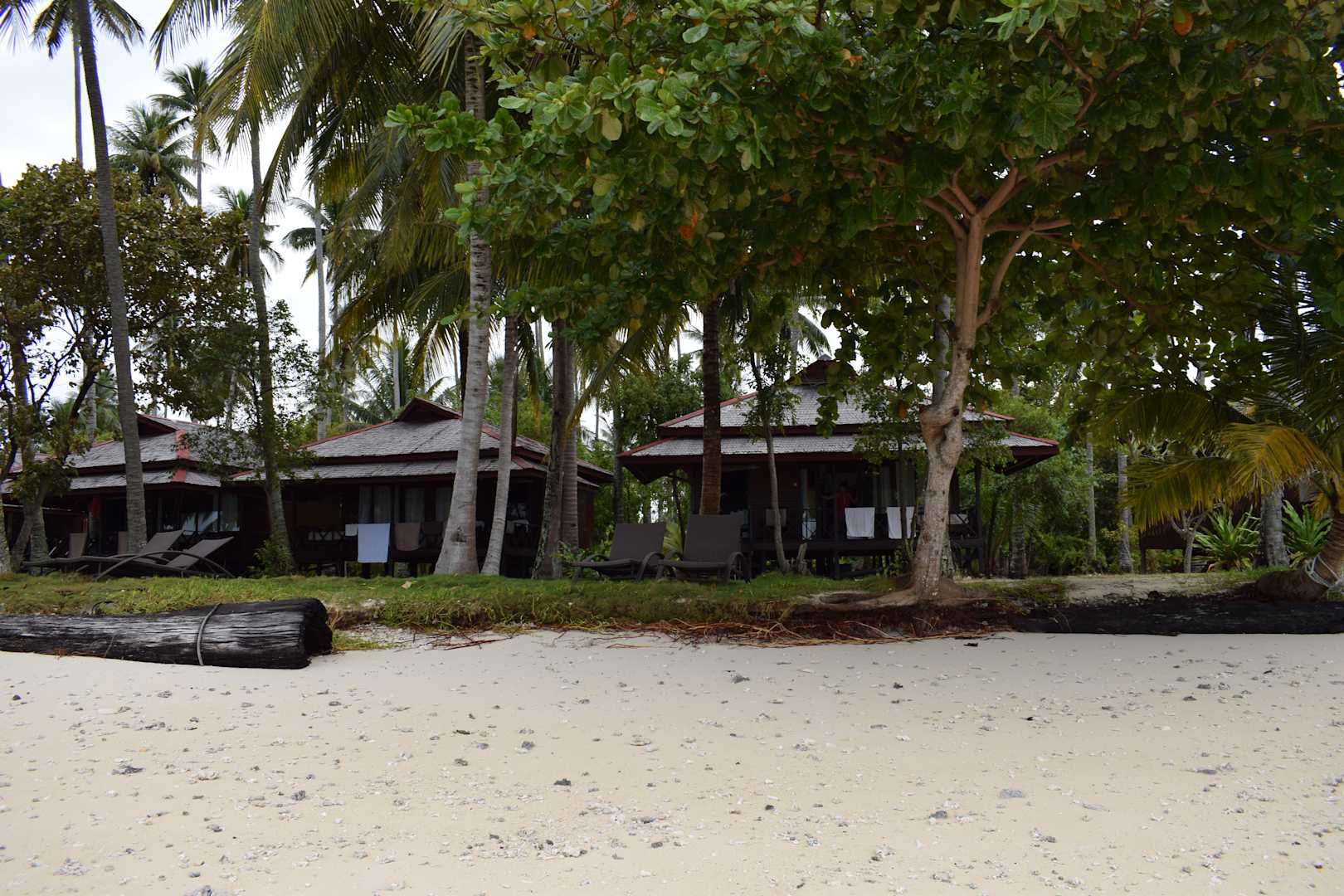 Blick vom Strand zu den Bungalows.