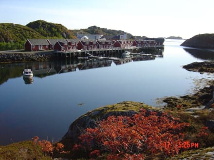 Herbstlicher Blick auf die Rorbues von der anderen Fjordseite aus gesehen