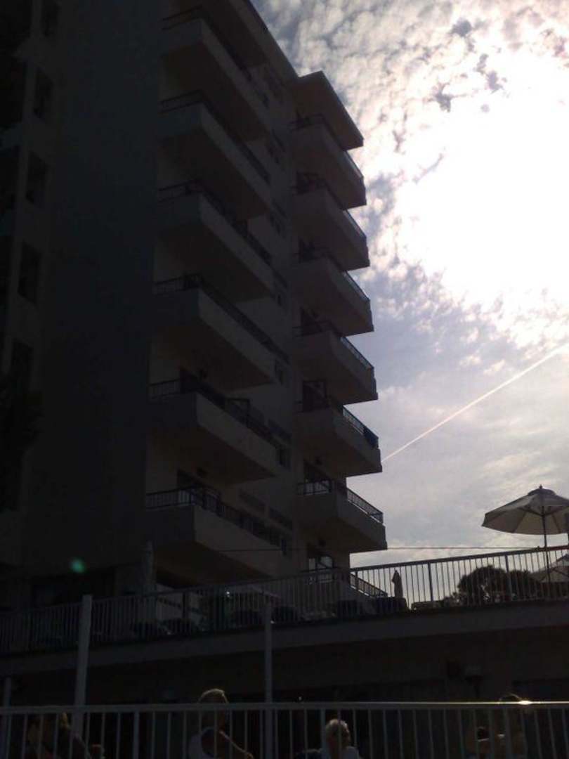 Seitenansicht vom Pool aus des Hotel Hawaii
