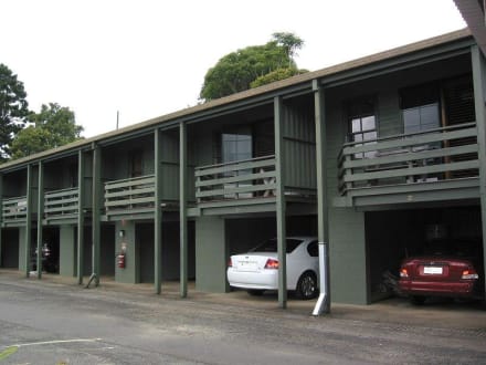 O'Reilly's Rainforest RetreatRückseite eines Gebäudes mit Balkon und PKW-Einstellplatz unter dem Balkon/Zimmer