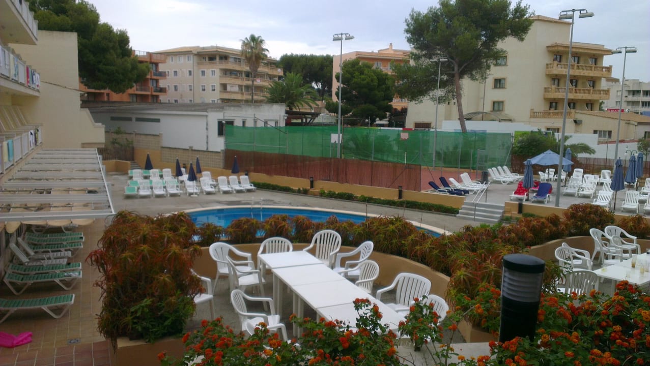 Links Haus "Es Vinet" Poolanlage um 7:45 Uhr Bild  O7 Club Cala Ratjada