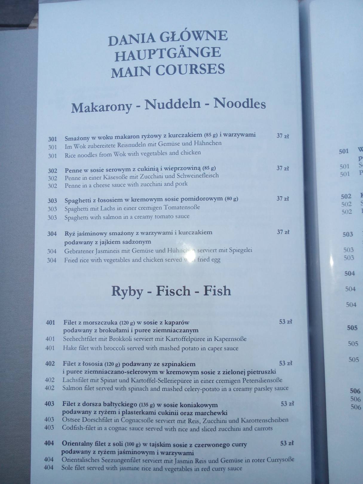 Speisekarte Oasis Resort