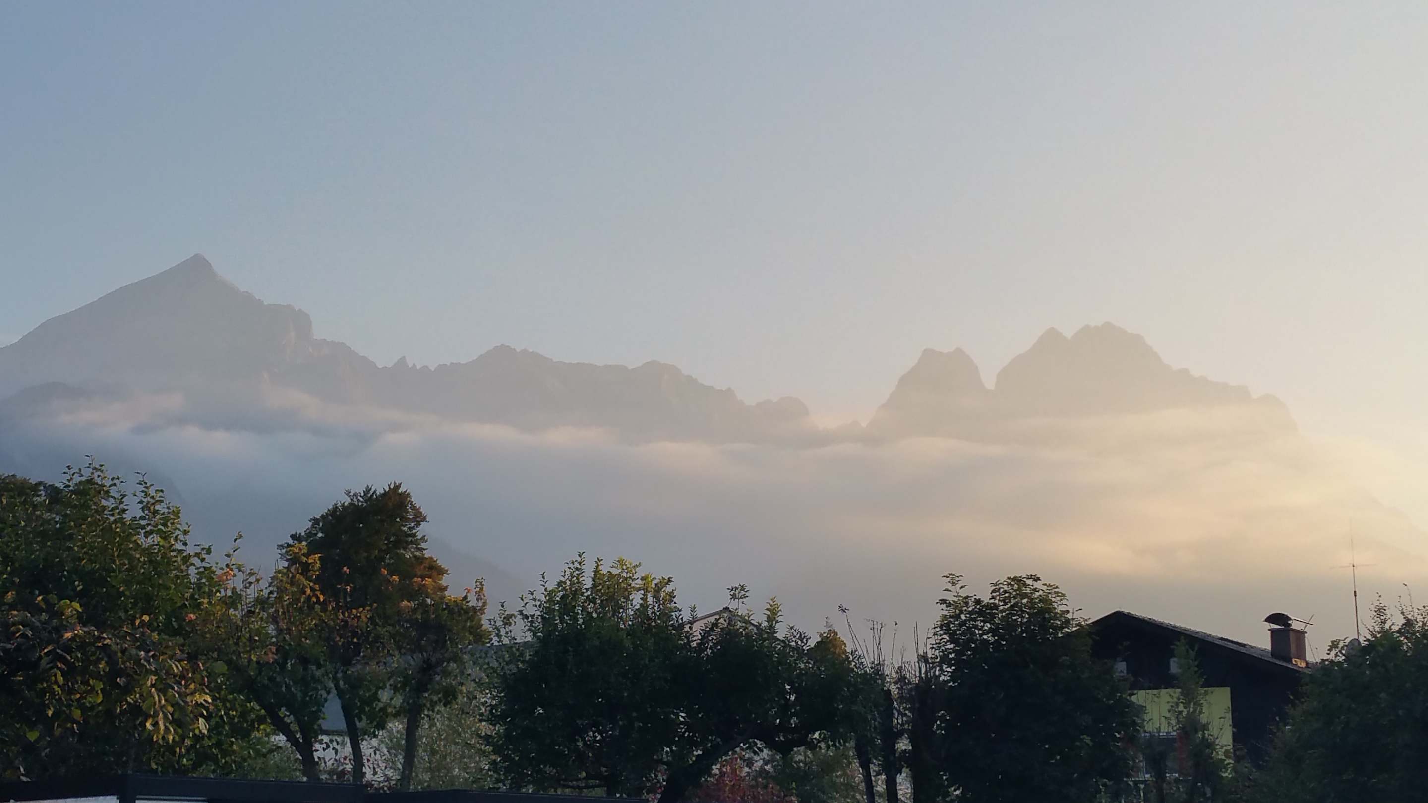 Blick beim Frühstück auf die Berge