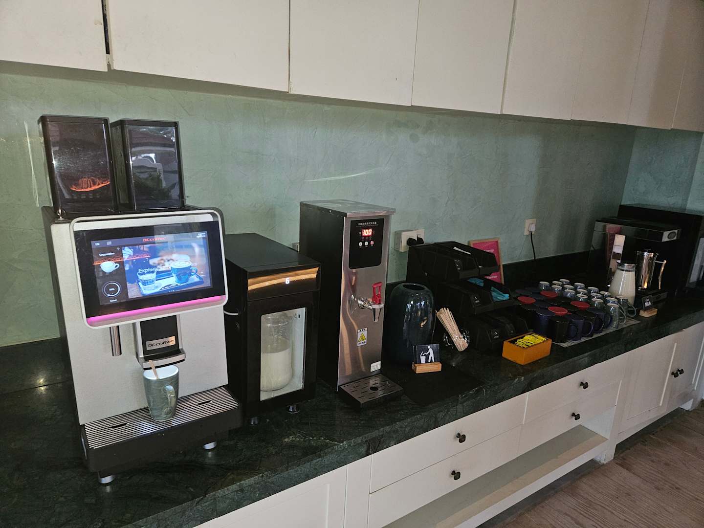 Es gab leider nur 2 Stück Kaffeemaschinen für min.100 Leute. Immer eine lange Schlange zum warten