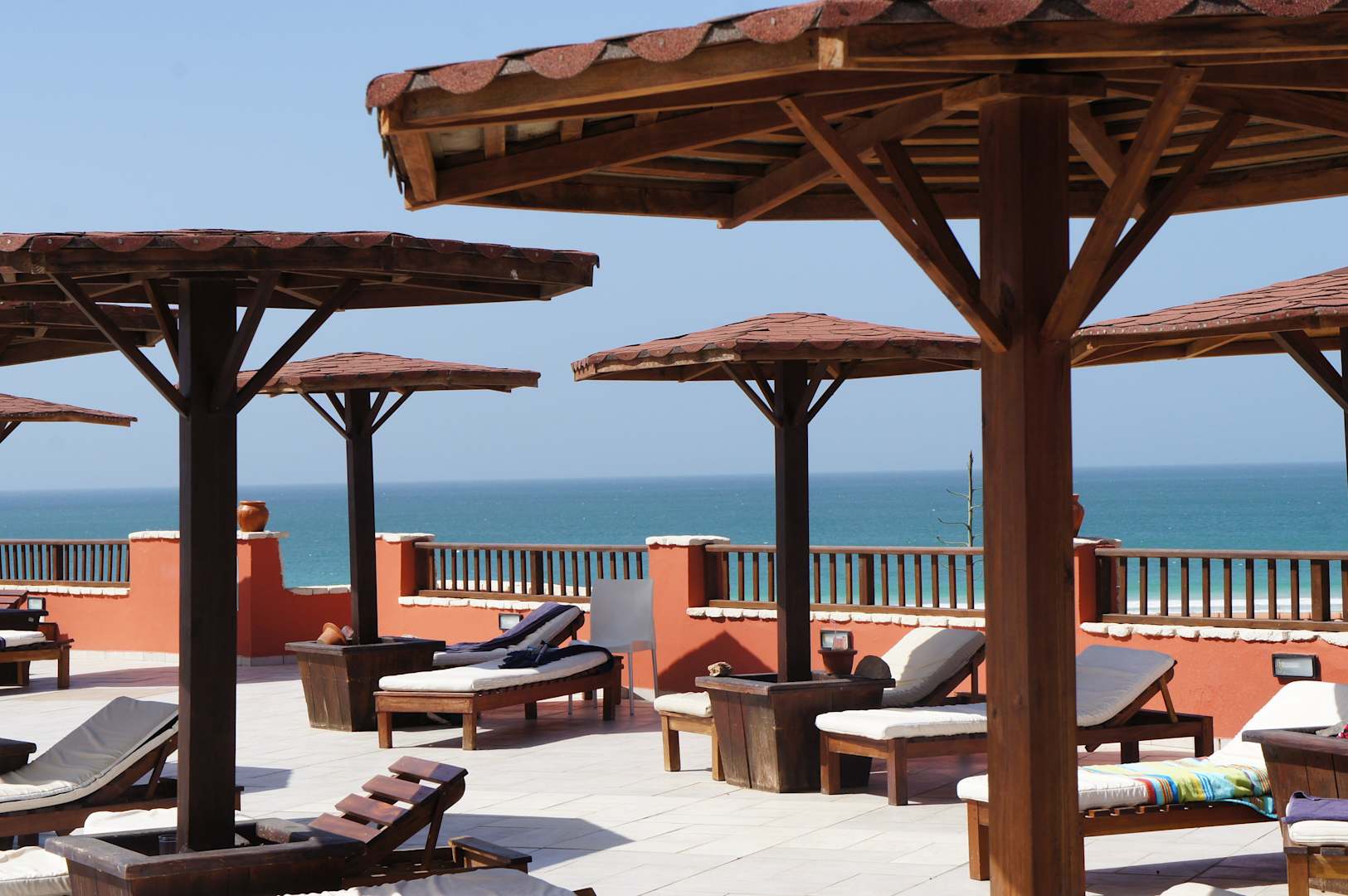 Liegefläche um Hotelpool mit Blick auf das Meer