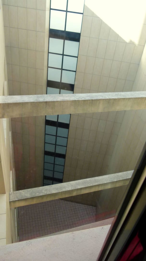 Blick aus dem Zimmerfenster in den Innenhof