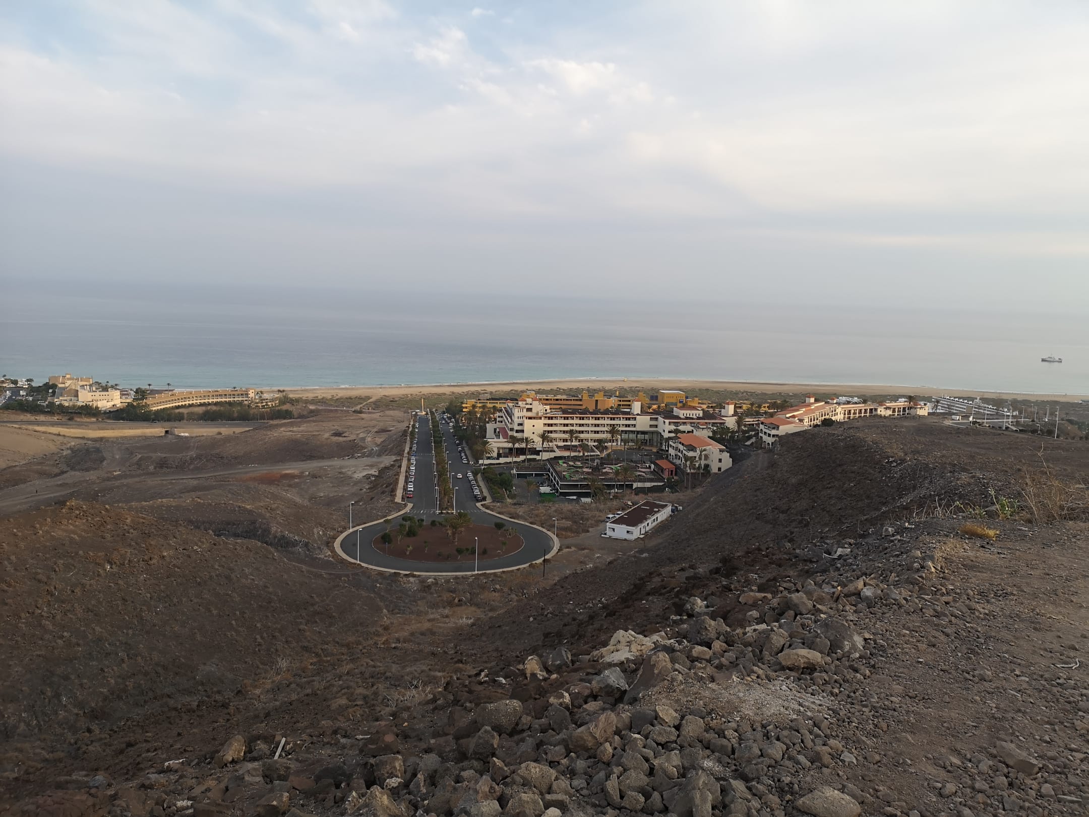 hotel und weg zum strand vom berg aus gesehen