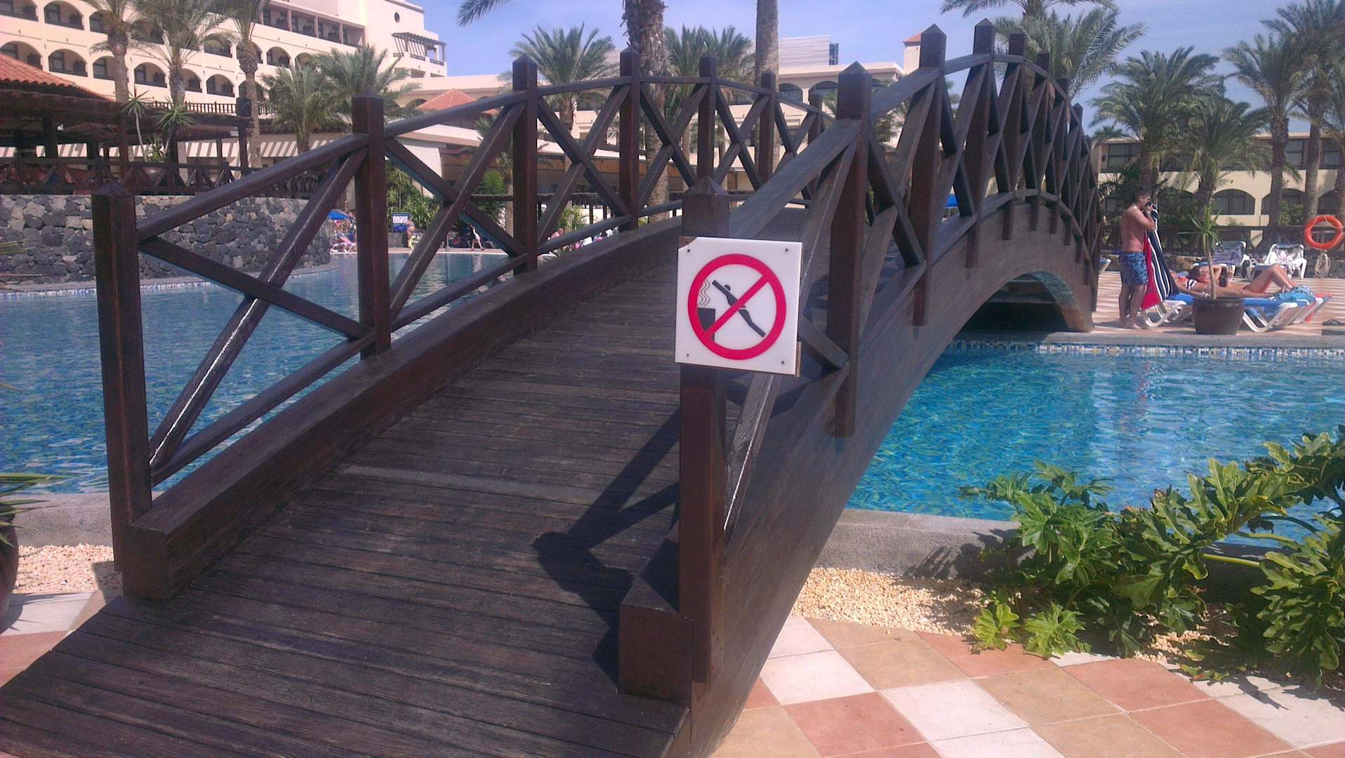 Lustiges Schild am Pool: Bitte nicht hochspringen