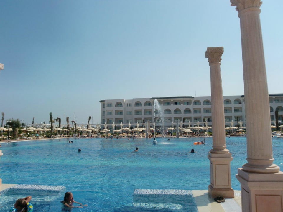 Blick auf den Pool mit Fontäne