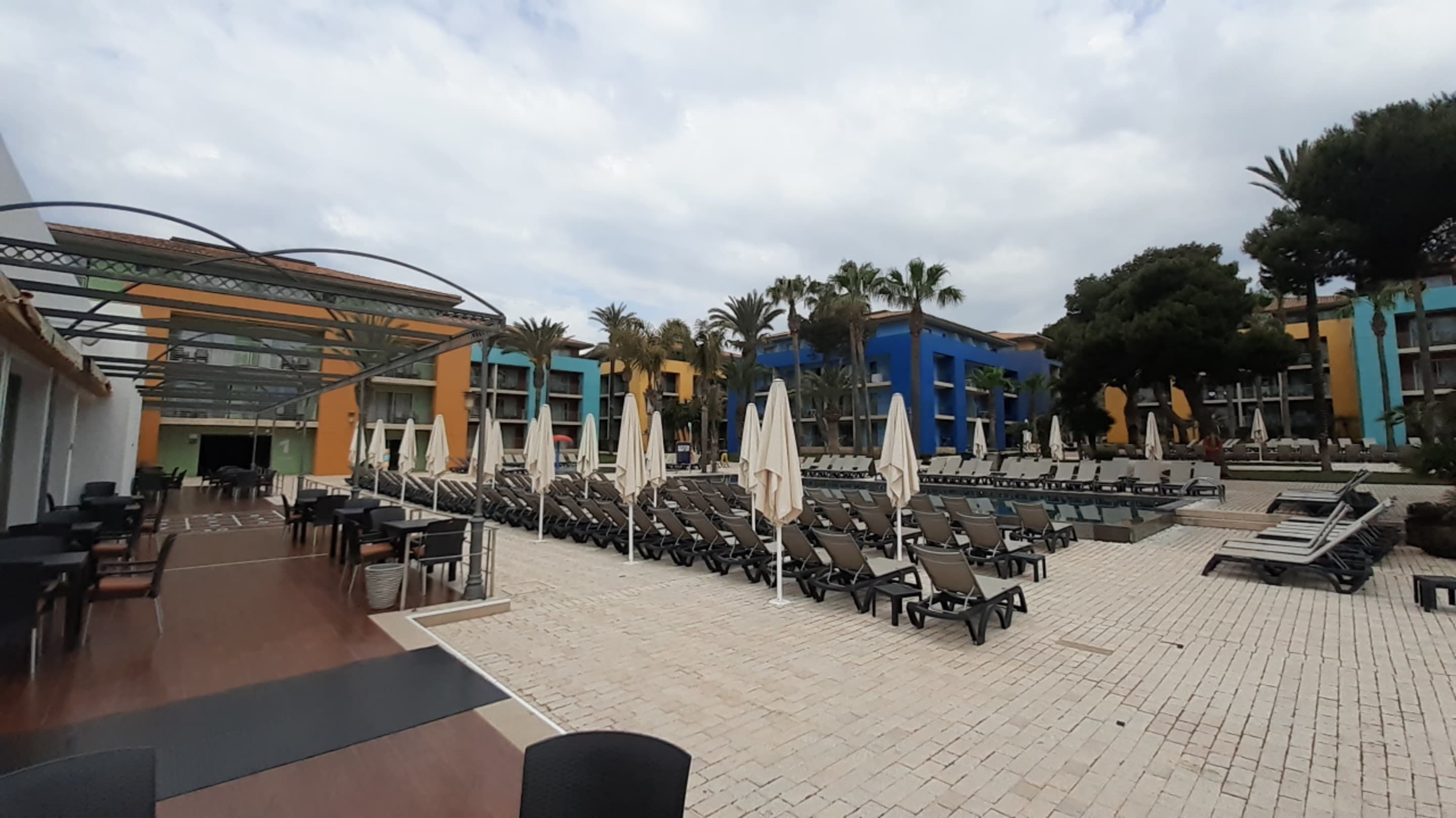 Dreh und Angelpunkt der Ferienanlage, der zentrale Innenbereich mit der Poolzone