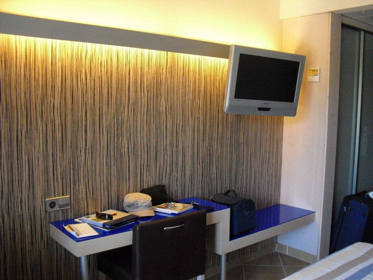 Fernseher und kleiner Schreibtisch