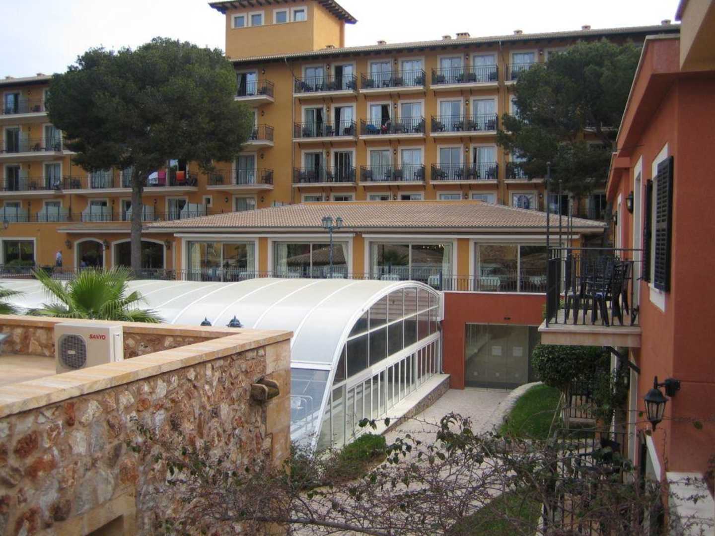 HauptgebäudeBlick auf das Hauptgebäude der Anlage aus einem Appartment