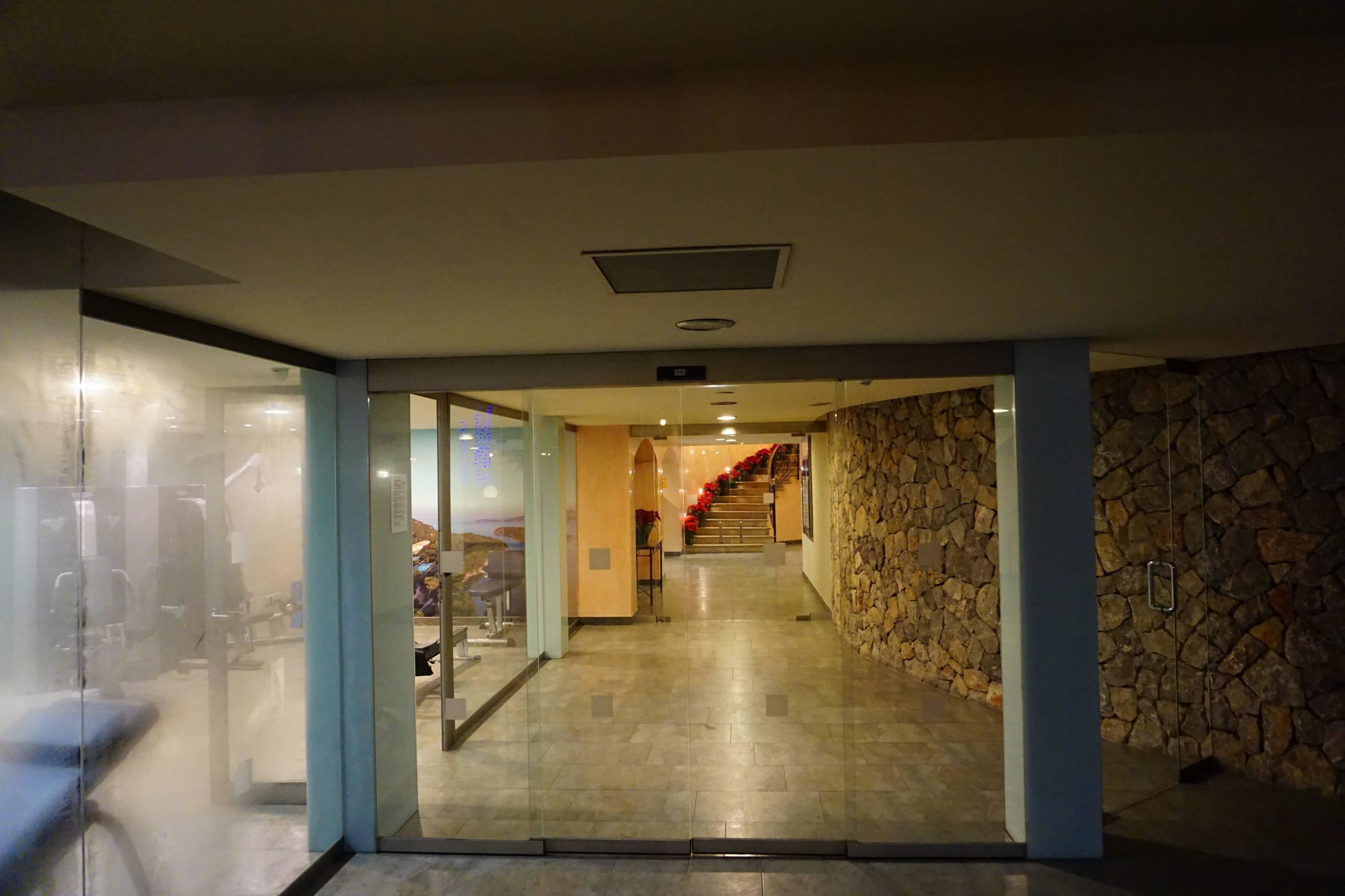 Blick vom Innenpool zum Aufgang