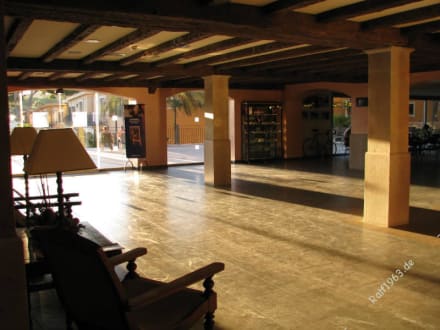 DurchgangDurchgang unter dem Haupthaus vom Eingangsbereich zum Poolbereich. Rechts hinten eine große Bar, links wäre der Eingang zum Speisesaal.