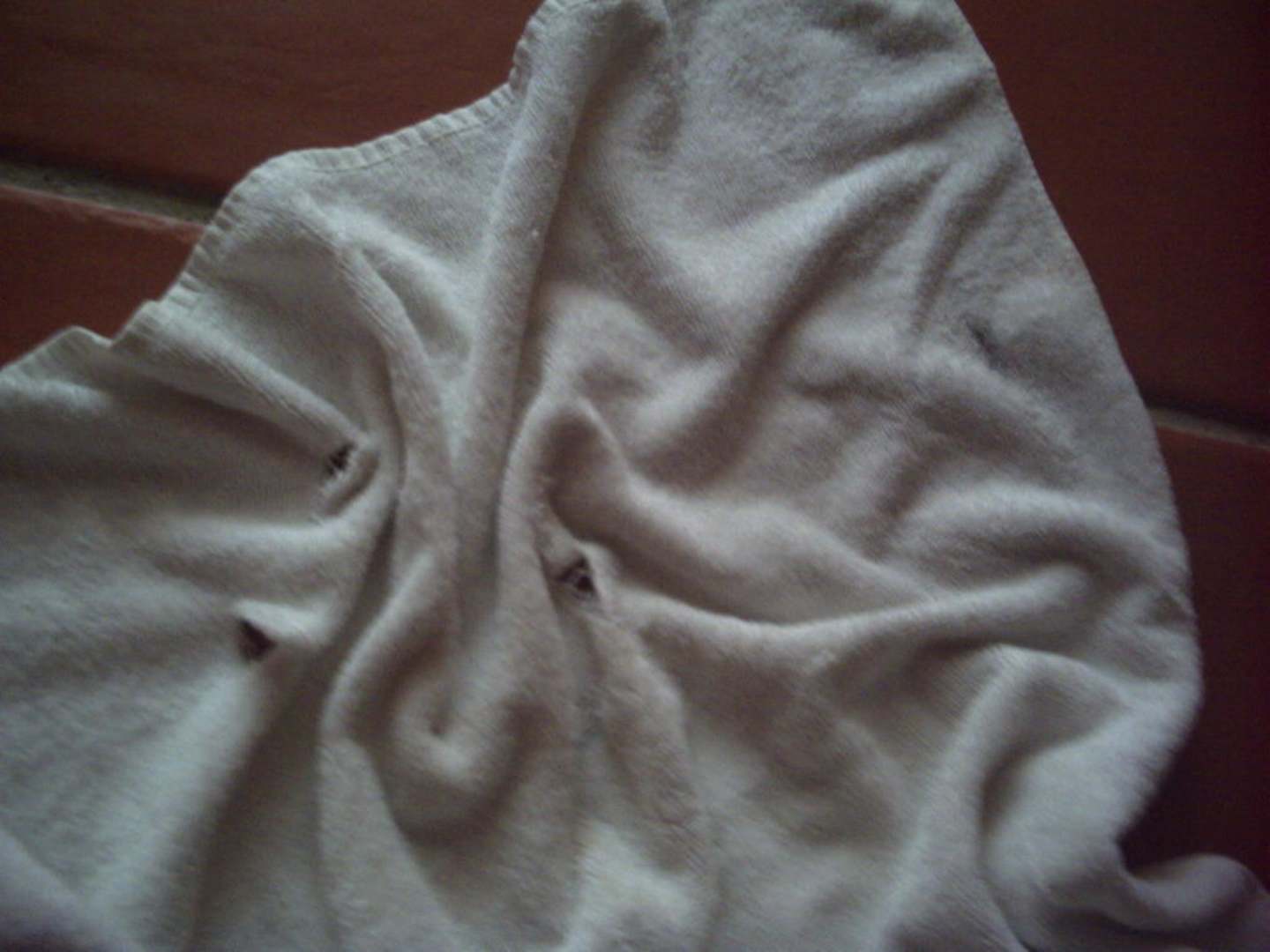 jeden Tag gabs zwei frische Handtücher, davon immer mindestens eines stark verschmutzt oder wie auf dem Bild, zerfetzt. Putzlappen als Handtuch und das in einem 4 Sterne Hotel, Sauerei!!!!