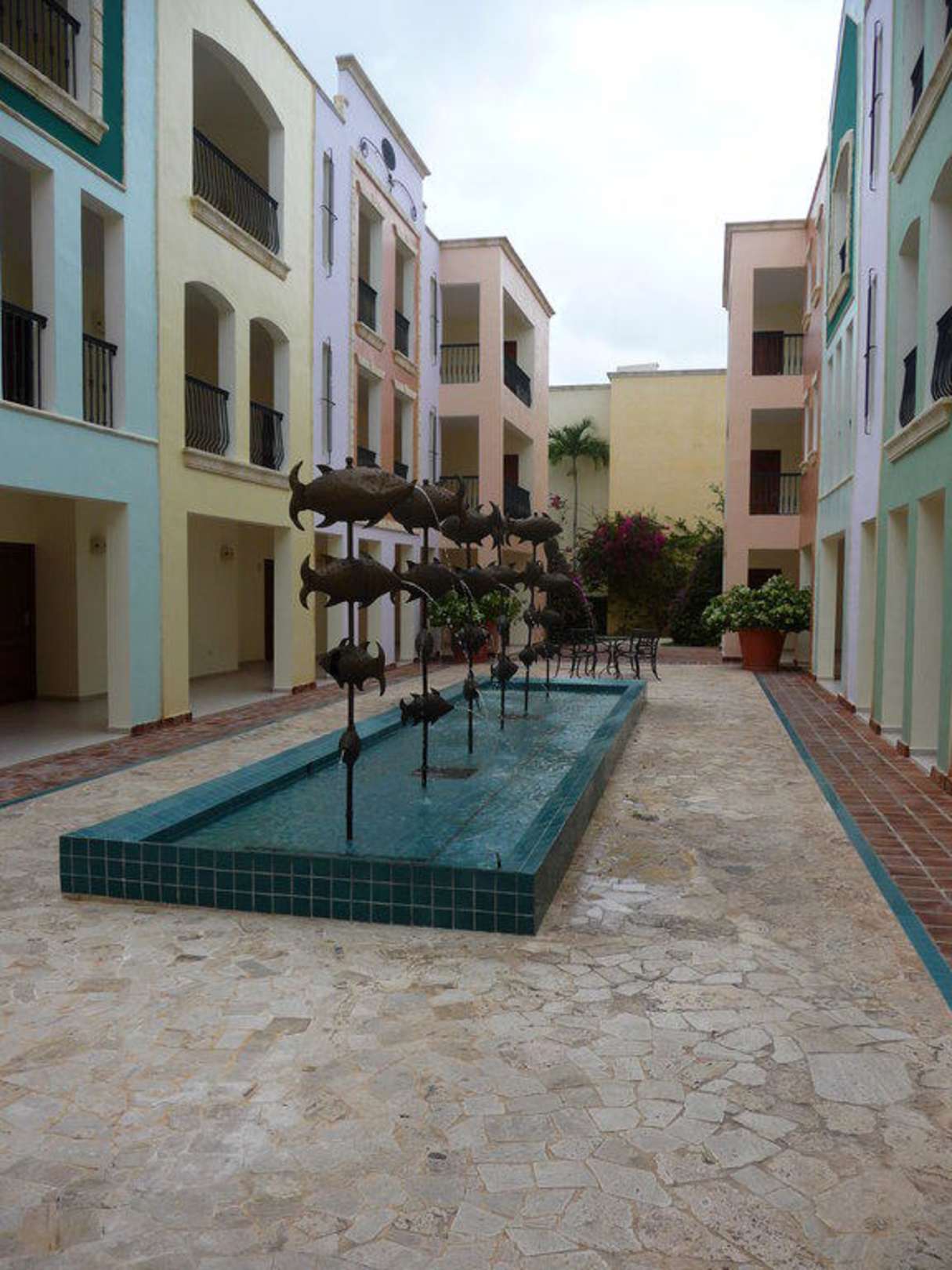 Springbrunnen zwischen den Gebäuden