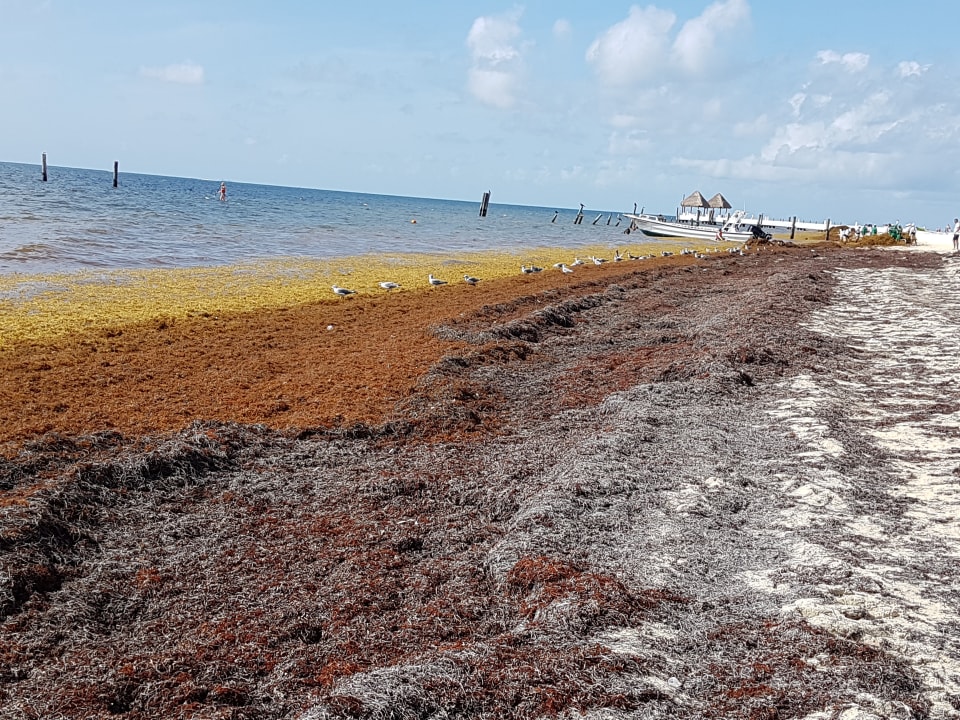 Strand mit Seegras am 04.07.18 über Nacht neue Seegrasteppiche gekommen
