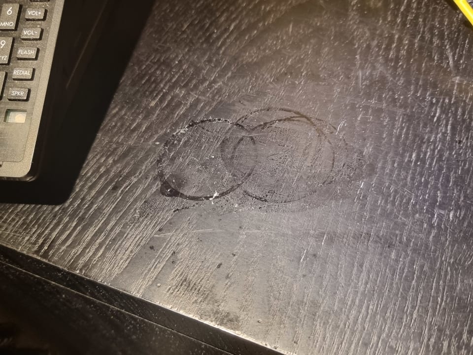 Nachttisch mit Wasserflecken während des gesamten Urlaubes