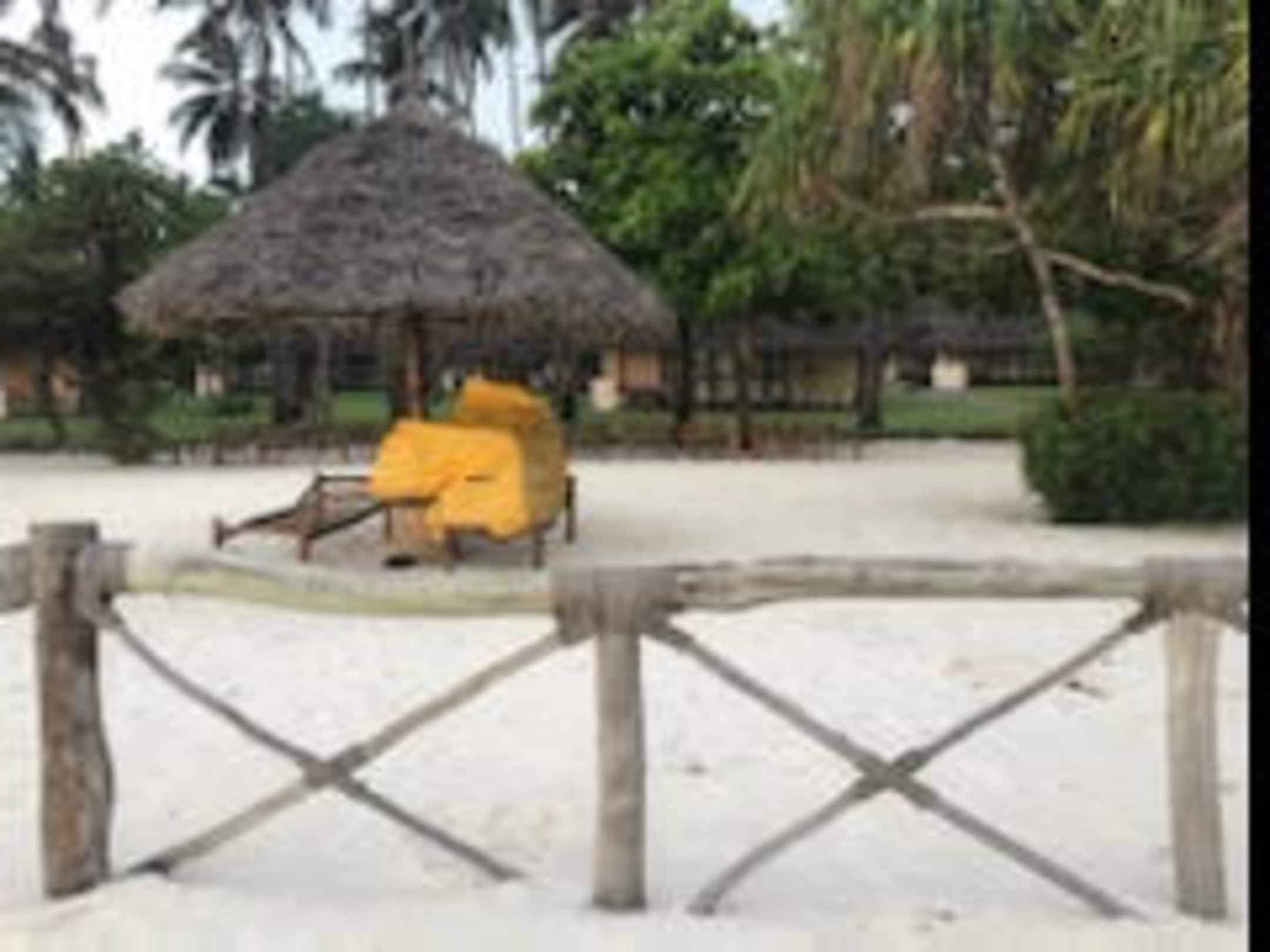 unsere Liegen mit dem Schirm, dahinter unser Bungalow Nr. 104...perfekter geht es nicht