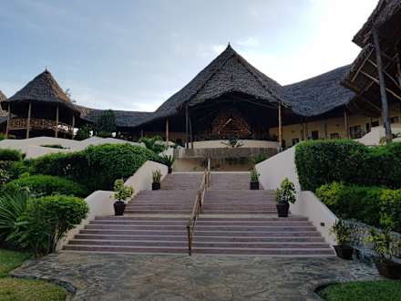Treppenaufgang zur Lobby und zum Frühstücksrestaurant vom Garten her kommend