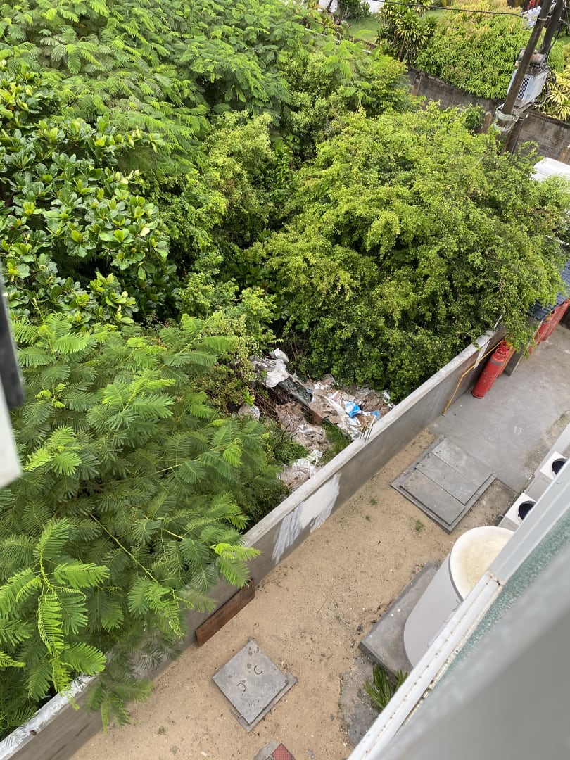 Ausblick von Zimmer 104 auf den Müllhaufen hinter dem Hotel.