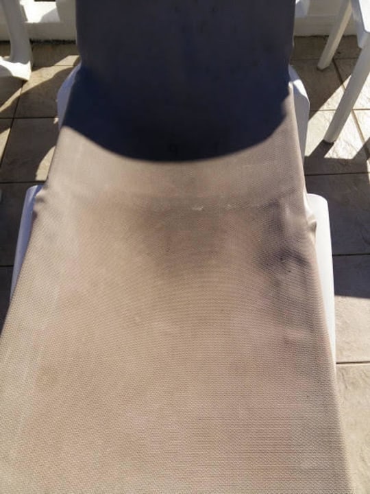 StrandliegeTotal versiffte Strandliege, legt man hier sein Handttuch darauf, kann man es direkt danach Waschen oder besser gleich entsorgen.