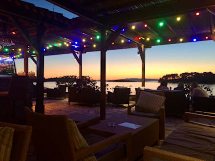 Die Bar am Meer bei Sonnenuntergang.