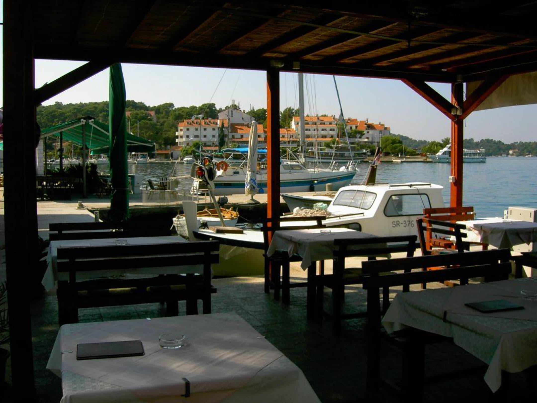 Blick hinüber zum Hotel OdisejNeben dem Hotel befinden sich mehrere kleine Privatunterkünfte und Restaurants in Pomena.