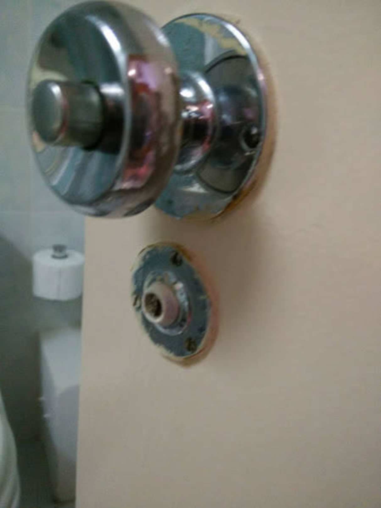Schmutzige, versiffter Badezimmertürknauf